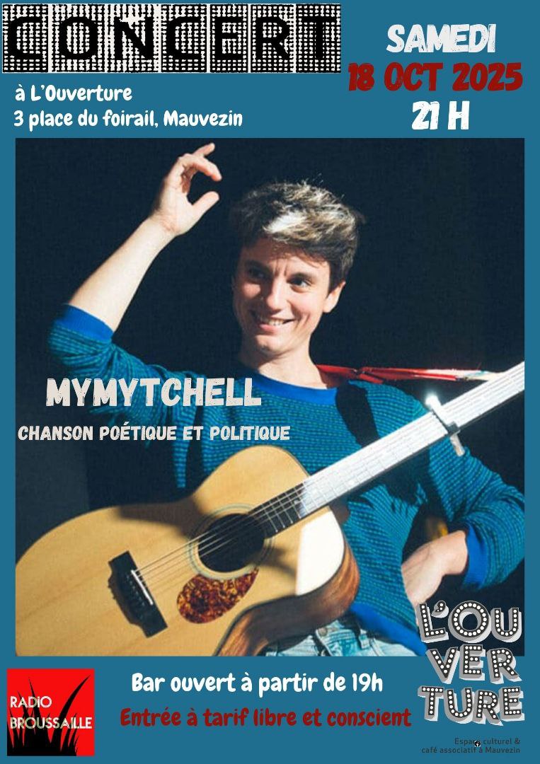 Samedi 18 Octobre à partir de 19h : Concert à 20h30 avec Mymytchell, chansons poétiques et politiques.