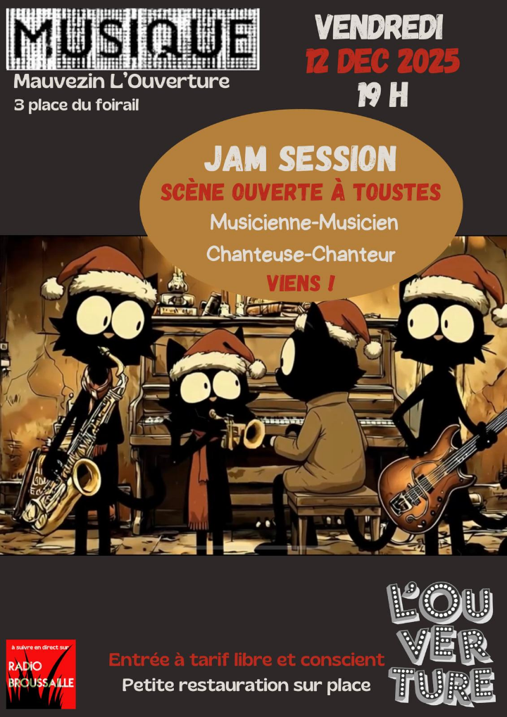 Vendredi 12 décembre à partir de 19h : c’est la 2ème de la saison 2025-2026 des Jam Session, avec mix en fin de soirée !